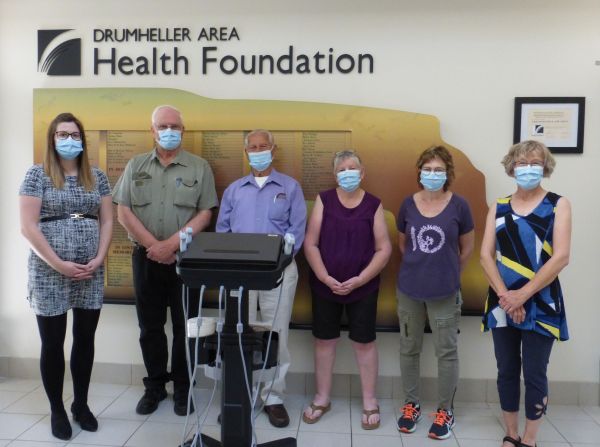 We are SO GRATEFUL to Heart to Heart Society of Drumheller for donating $39,000 and Heart to Heart Society of Calgary for donating $8,000 towards the purchase of the portable ultrasound at the Drumheller Health Centre in 2021. On June 2nd, 2022, we were finally able to get everyone together to take a photo with the equipment:
