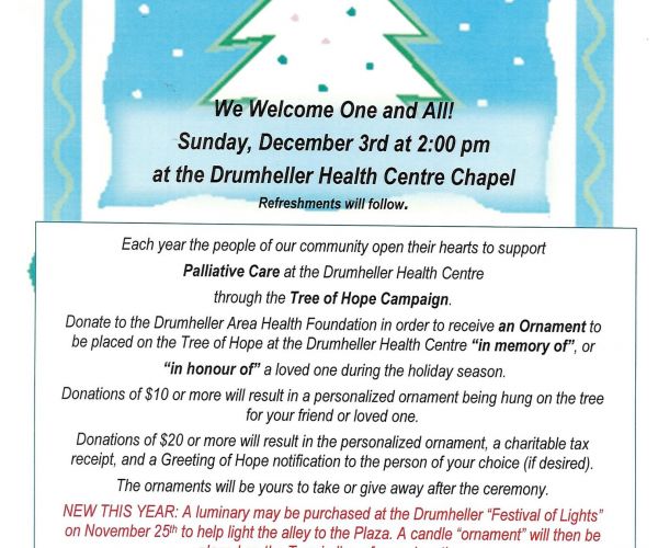 Each year, the people of our community open their hearts to support Palliative Care at the Drumheller Health Centre through the Tree of Hope Campaign.