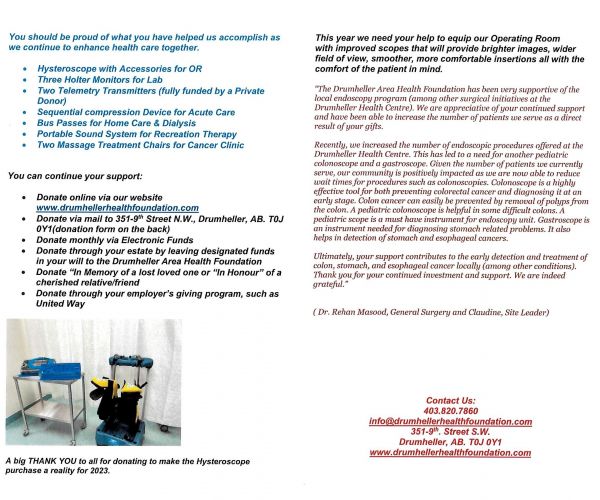 We need your voice and your generosity to continue our progress to provide a healthier future for Drumheller and its neighboring communities.